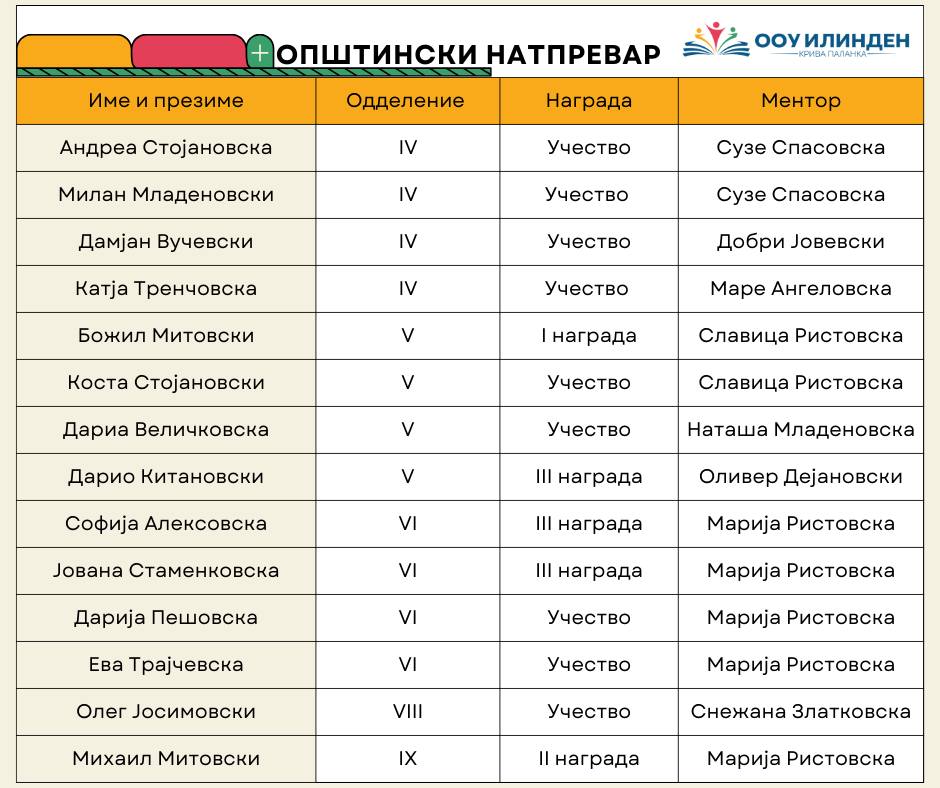Честитки до учениците и нивните ментори за учеството и постигнатите резултати и им посакуваме многу поголеми успеси во понатамошните натпреварувања!