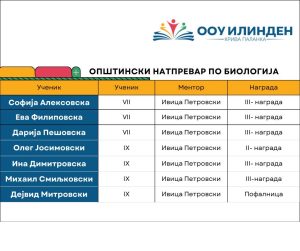 24/02/2026На 13.2.2026 година во нашето училиште се одржа општински натпревар по биологија. На натпреварот учествуваа вкупно 7 ученици од седмо и деветто одделение.
