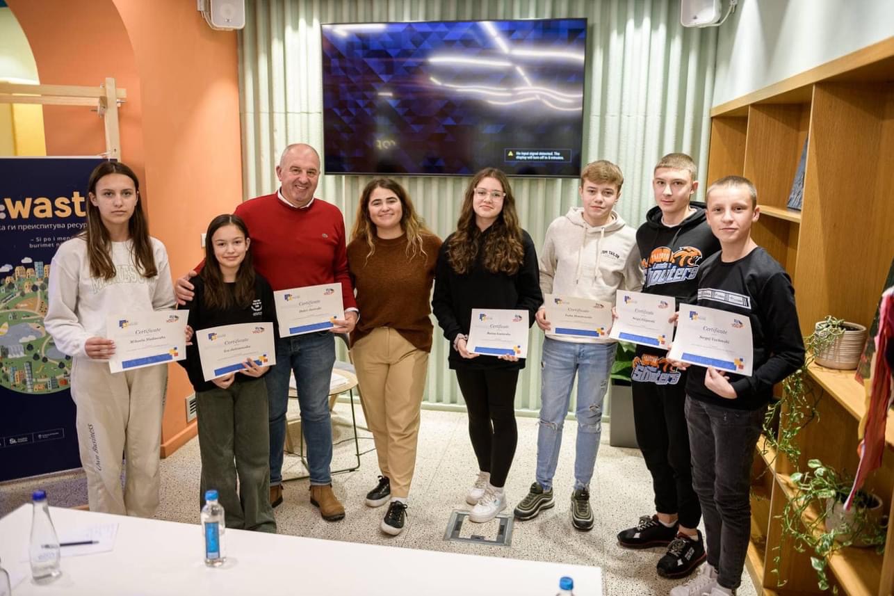15/12/2023Претставници од нашето училиште преку предлог идејата ЕкоРадар зедоа учество во иницијативата за создавање помалку отпад, реупотреба и рециклирање. Ваквата иновативна идеја е вистински предизвик и потрага по нови практики за управување со отпадот, одржливи иницијативи и зелени решенија. Благодарност до Europe House Kriva Palanka и иницијативата на Sustainable Waste: Boot Camp 5.0.